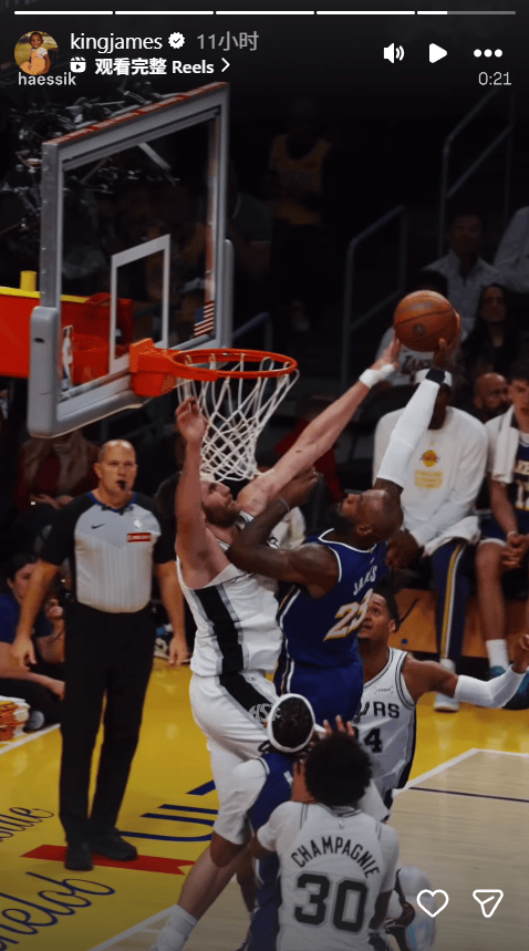 賽后,詹姆轉勒布朗-詹姆斯在INS上轉發(fā)了該回合相關動態(tài)。隔扣關動