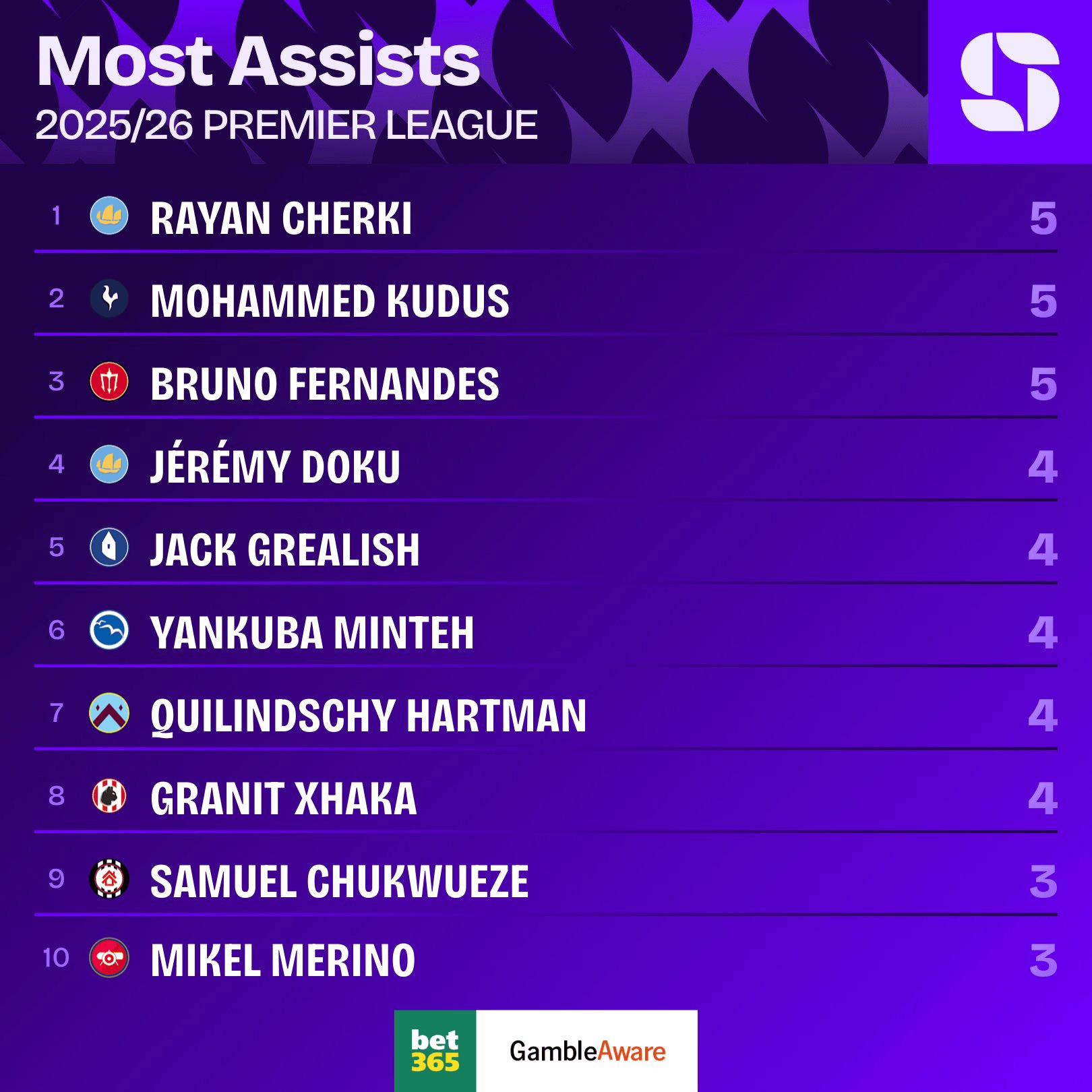 至此,登頂他已經(jīng)登頂本賽季英超的英超助攻榜。