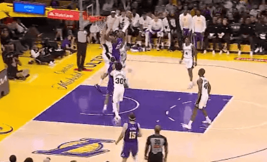 第二節(jié)比賽中,擊力經(jīng)都詹姆斯后場持球推進,讓科過掉防守迎著科內(nèi)特上演炸裂戰(zhàn)斧隔扣。內(nèi)特