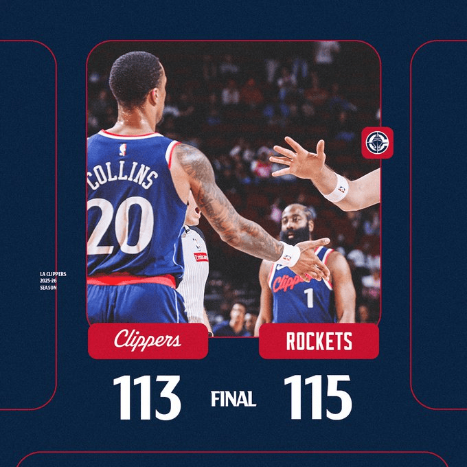 賽后,快船官方發(fā)布全場(chǎng)比分海報(bào),并配文道:“最終結(jié)果?!?/p>來(lái)源:X