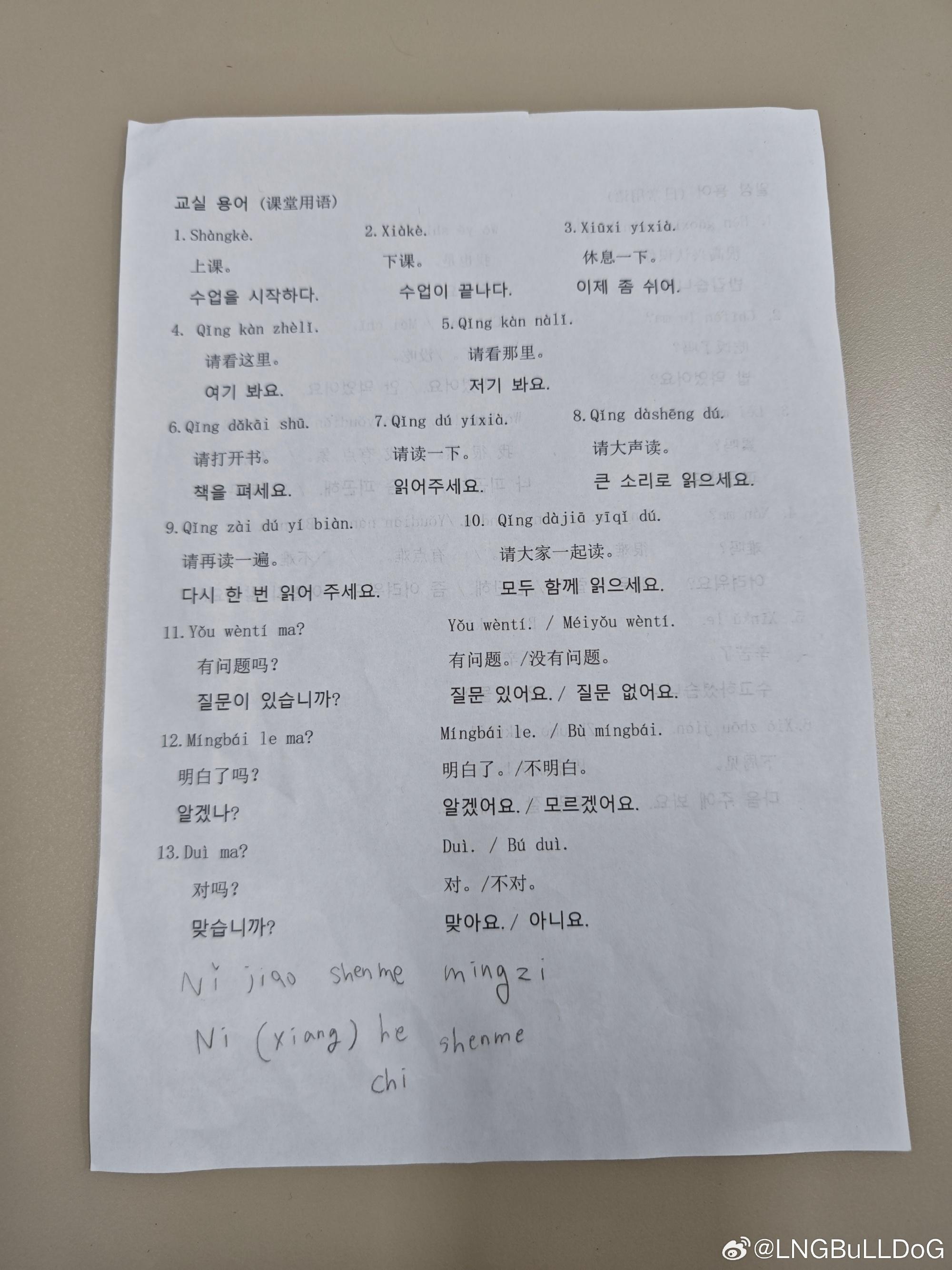 虎撲12月12日訊 今日LNG中單BullDoG分享中文課所學(xué)內(nèi)容,配文如下: